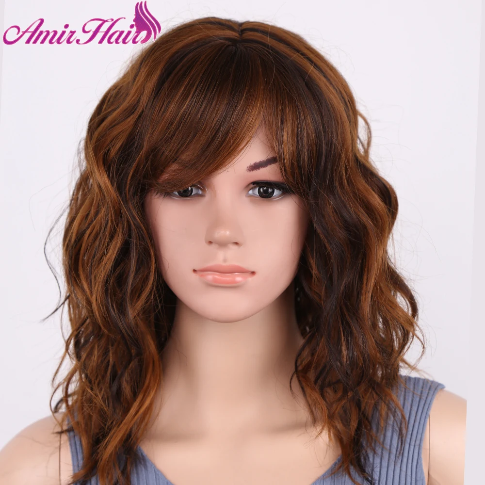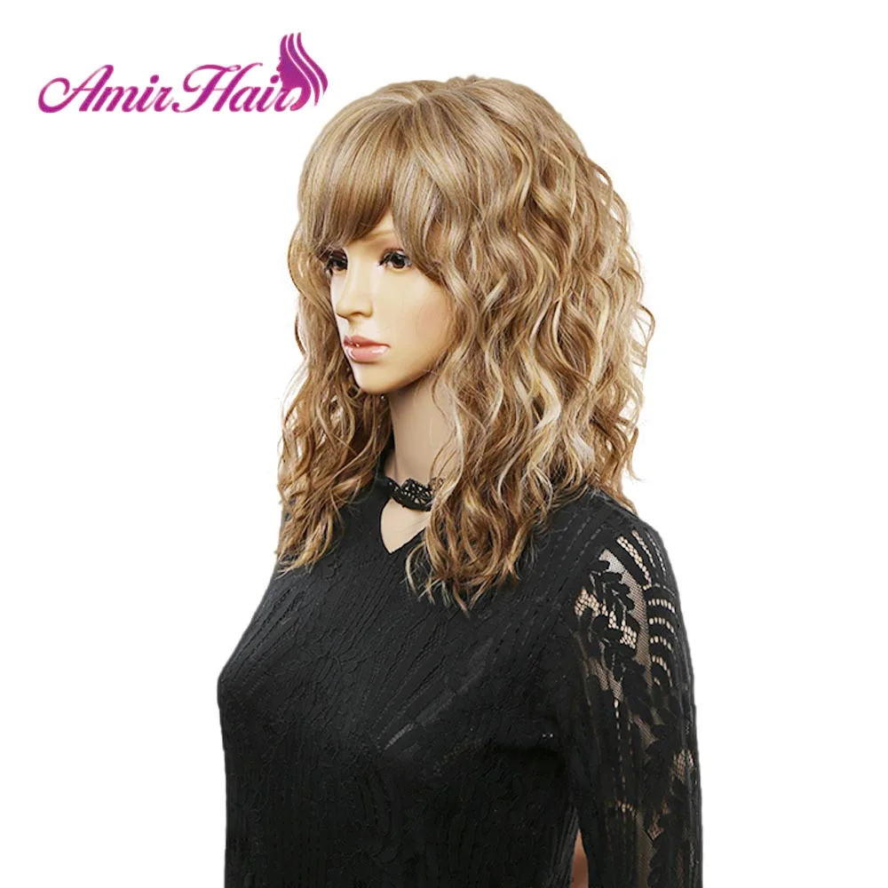 Review Top Amir blonde curly synthetic wigs with free side bangs medium Length Heat Resistant Fiber Cosplay wi