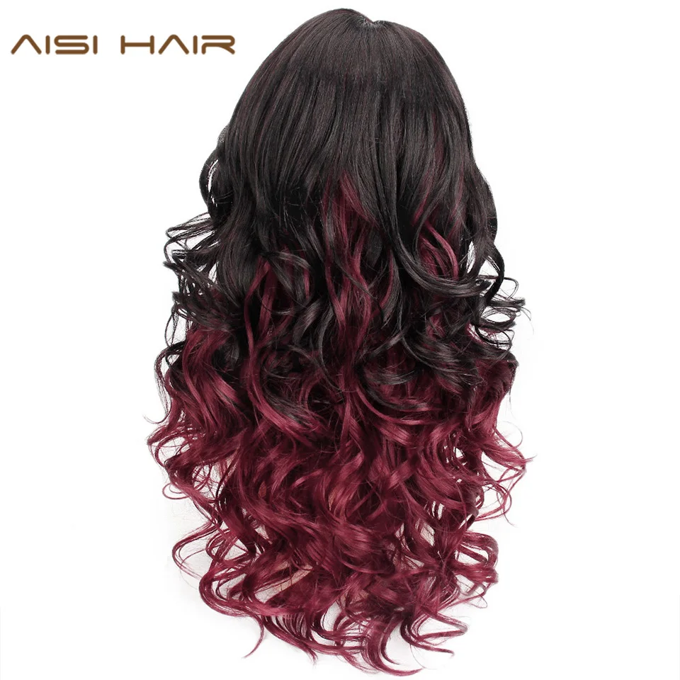 Long Wavy Red Black Hair Mix Color Women Wigs Heat Resistant Synthetic wigs with bangs for Women Af