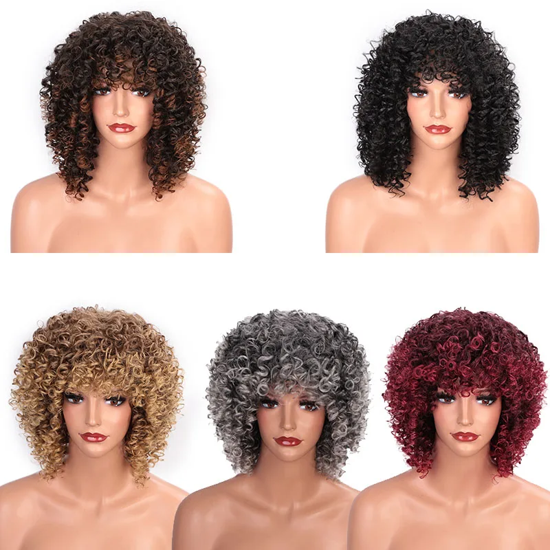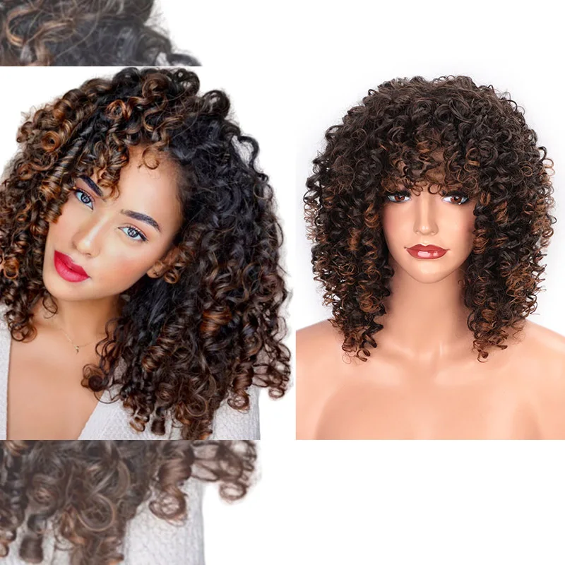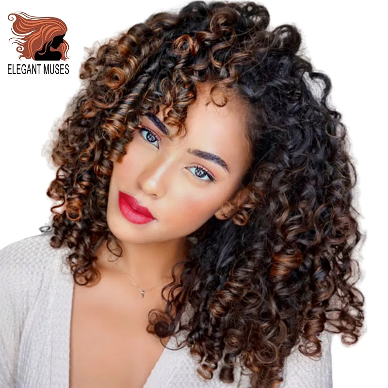 HOT Sale ELEGANT MUSES Afro Curly Wig Synthetic Wig Mixed Brown and Ombre Blonde Natural Black Hair for Wome