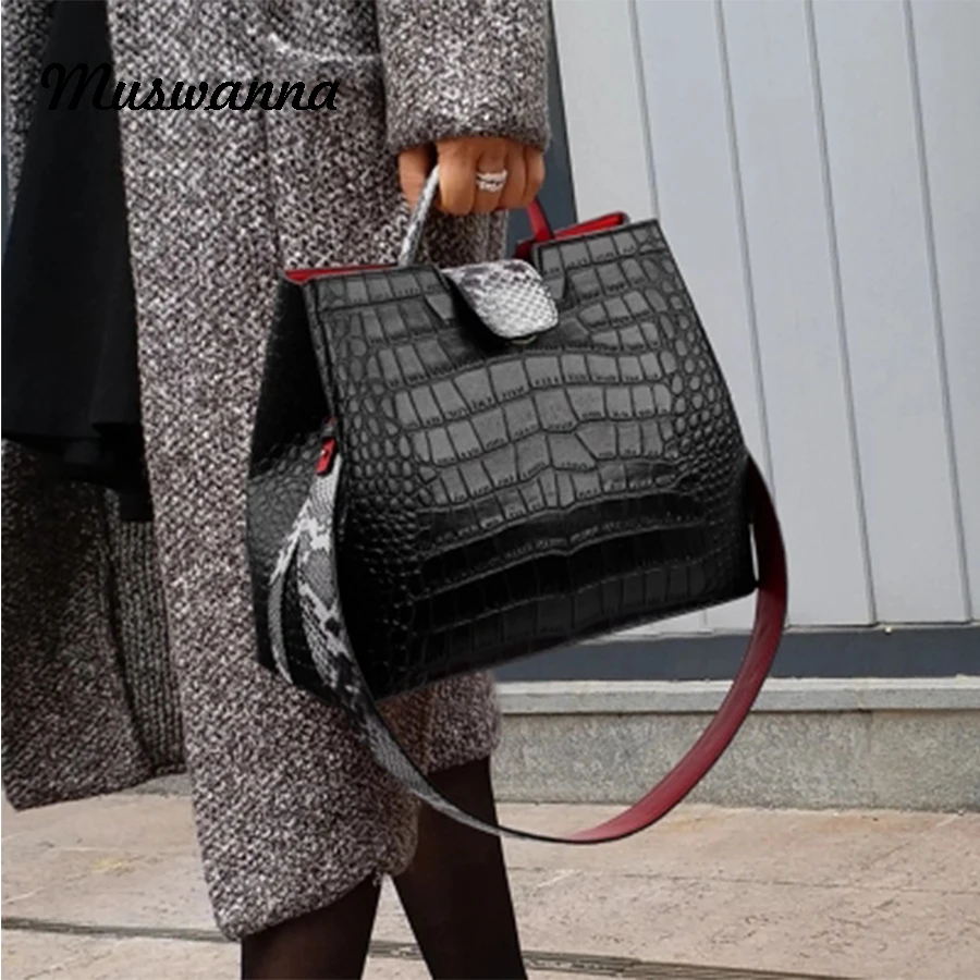 REVIEW TOP SELLER Luxury Crocodile Women Handbag Snakeskin Wide Shoulder Strap Bucket Bag Designer Shoulder Bag Buckl