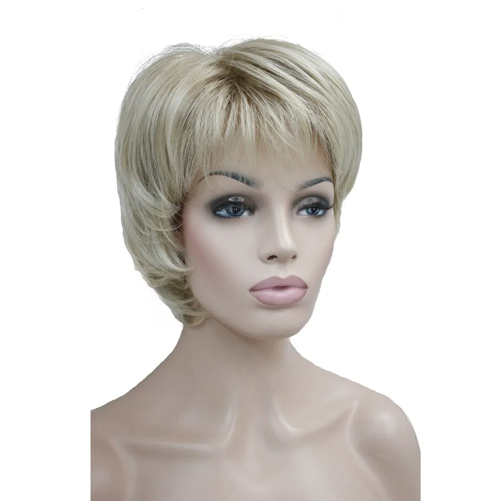 StrongBeauty Women's Wigs Natural Fluffy Ash Blonde Short Straight Hair Synthetic Full Wig 7 Color