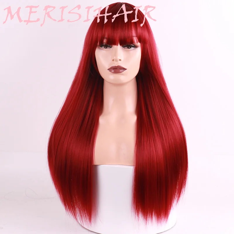 HOT Sale MERISI HAIR Long Straight Light Blonde Wig for Women African American Synthetic Wigs with Bangs Hea