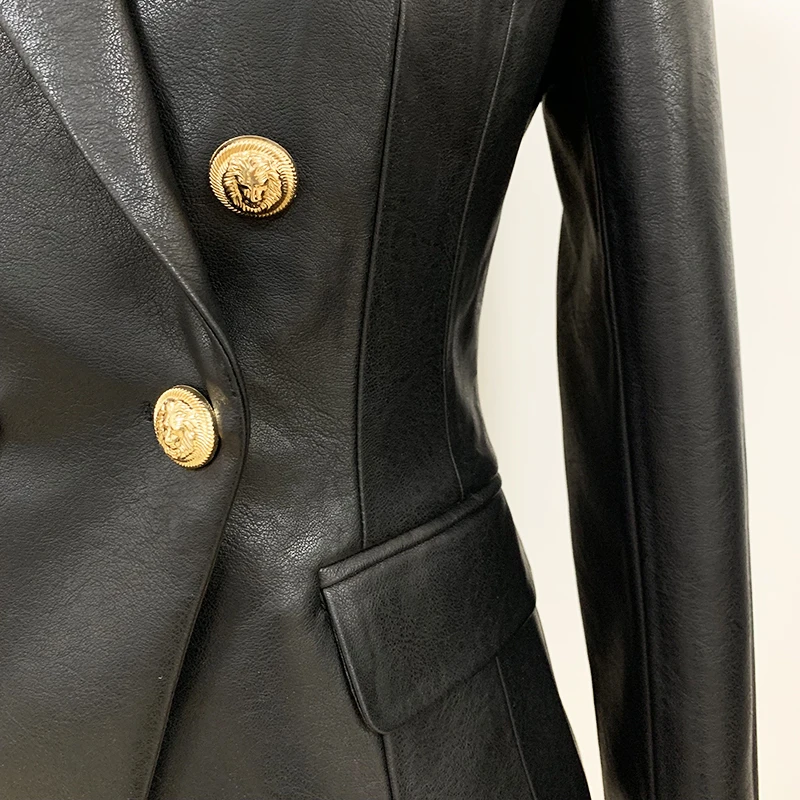 Newest Fall Winter 2020 Designer Blazer Jacket Women's Lion Metal Buttons Double Breasted Synthetic