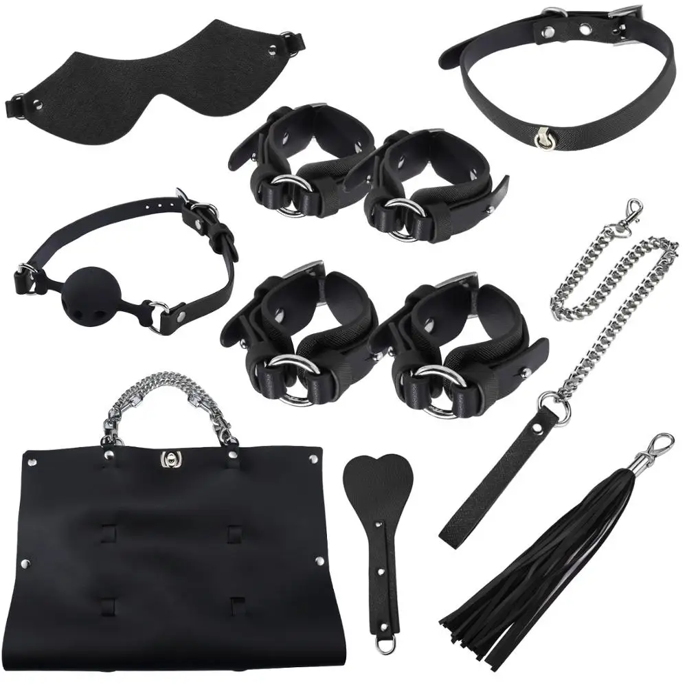 BEST SELLER Hot 8Pcs/set Sex Toys For Woman PU Leather SM Sex Bondage Set Storage bag Hand Cuffs Footcuff Whip