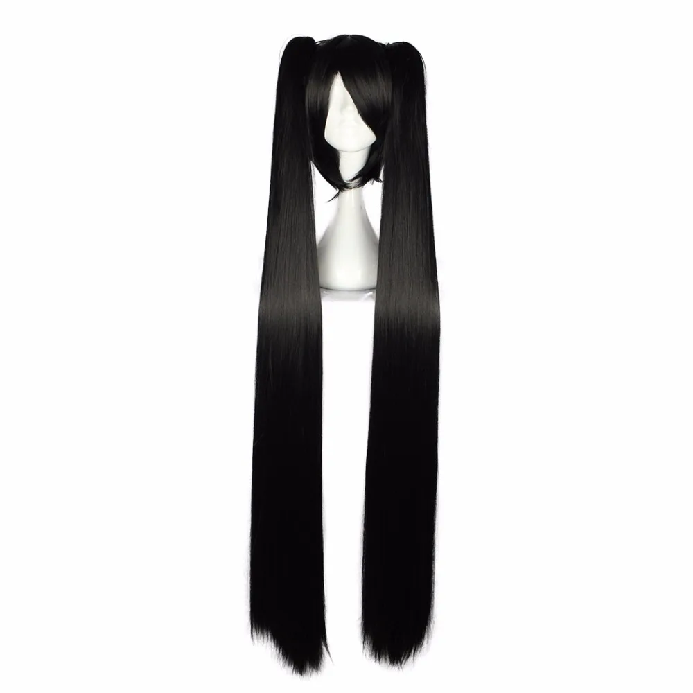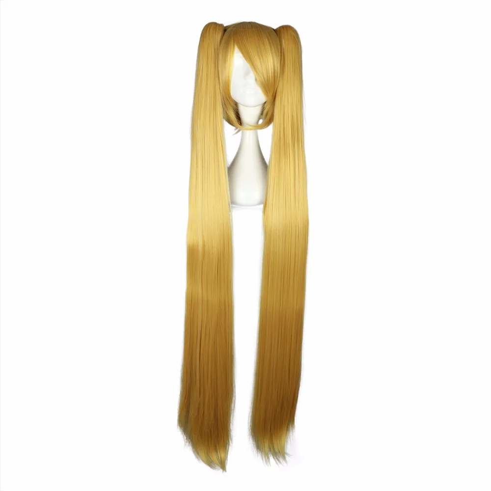 MCOSER 130 CM Long Straight Synthetic Cosplay Hair With Two Ponytails Black Gold green Color 100% H