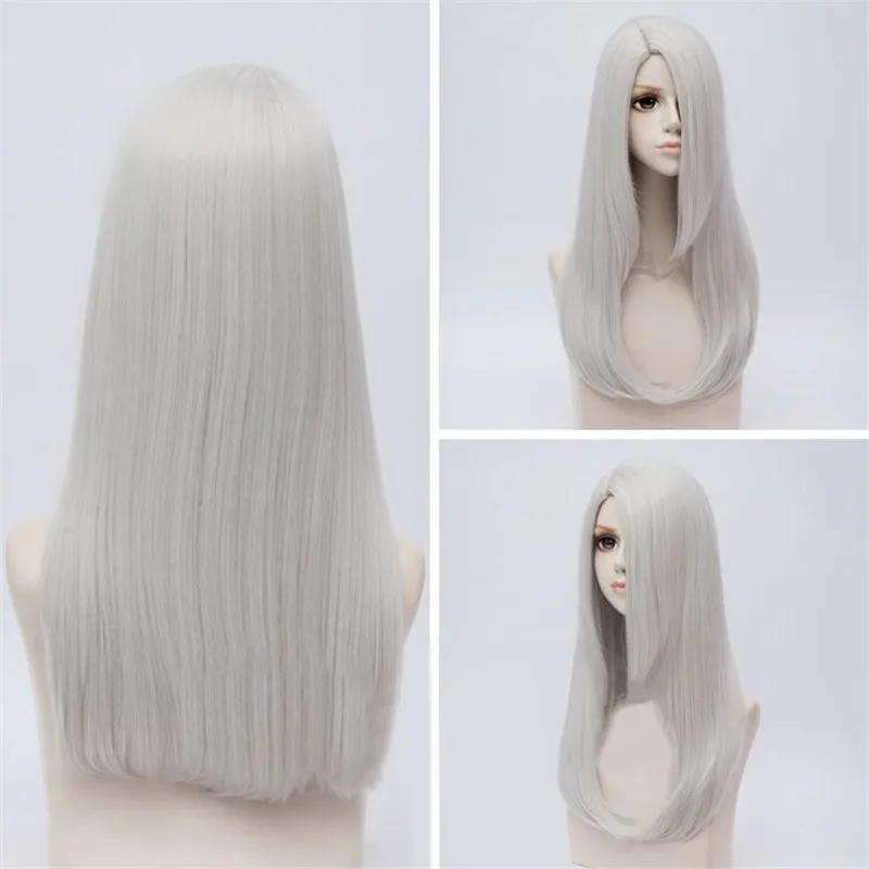 Anime YURI!!! on ICE Viktor Nikiforov Cosplay Wig Silver Grey Long Side Parting Synthetic Hair + Wi