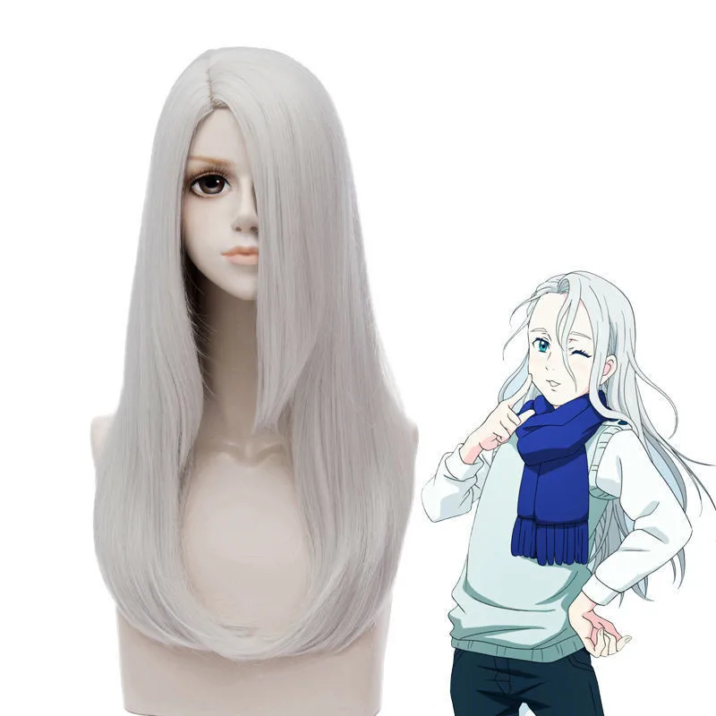 TOP Anime YURI!!! on ICE Viktor Nikiforov Cosplay Wig Silver Grey Long Side Parting Synthetic Hair + Wi