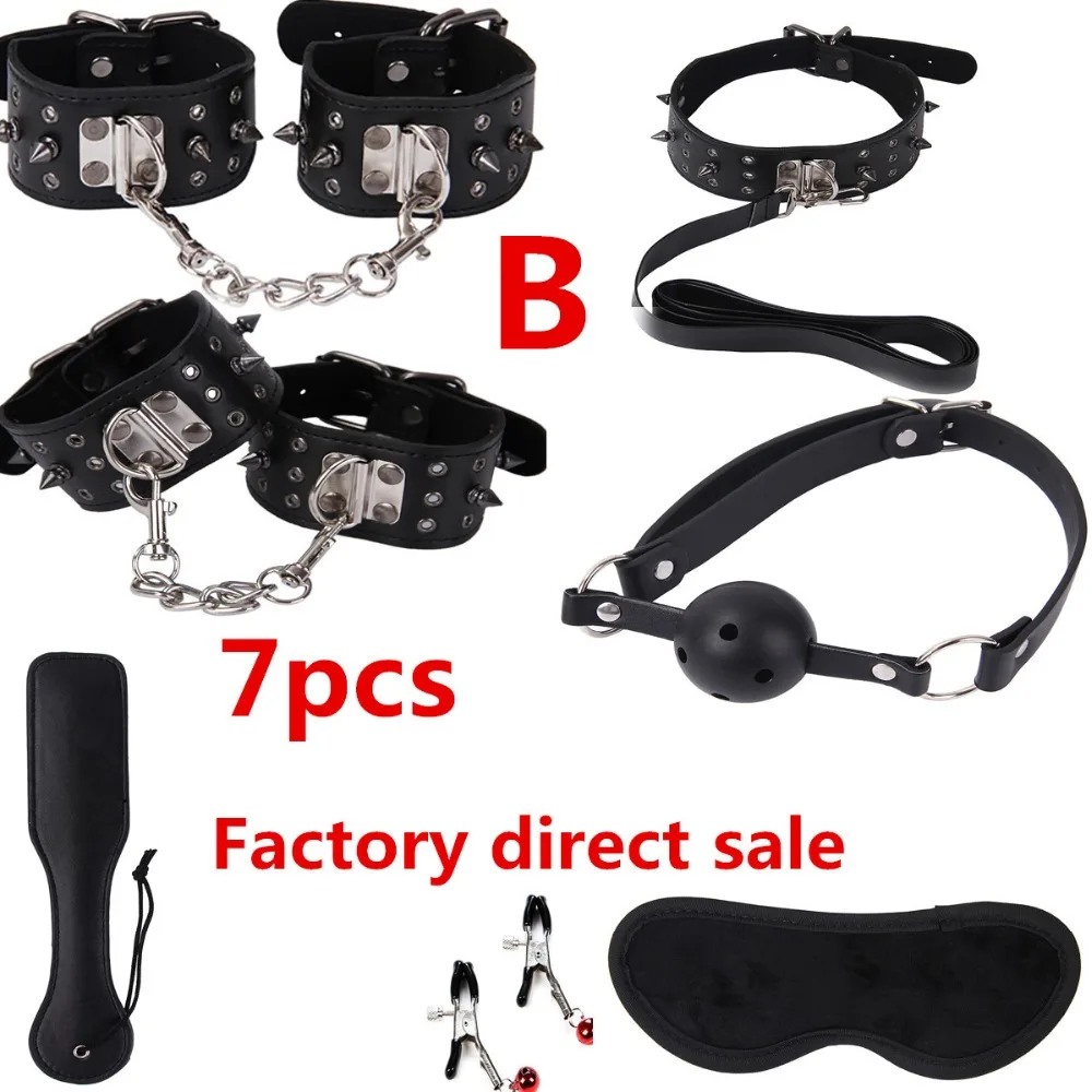TOP Factory direct Sex toy set Sm products Nipple Clamps Whip gag Bdsm Sex Collar mask Bondage Set Sexy