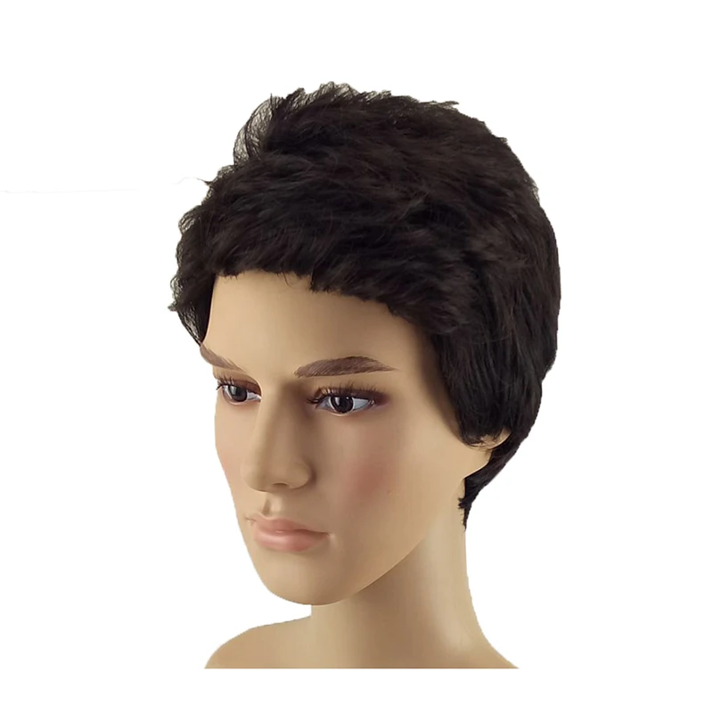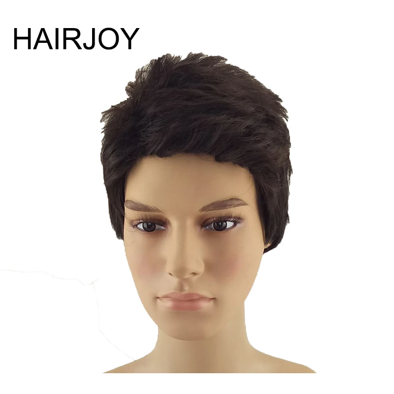BEST QUALITY HAIRJOY Synthetic Natural Black Wig Men Women Short Curly Layered Hair Red Brown Daily Wigs Free Sh