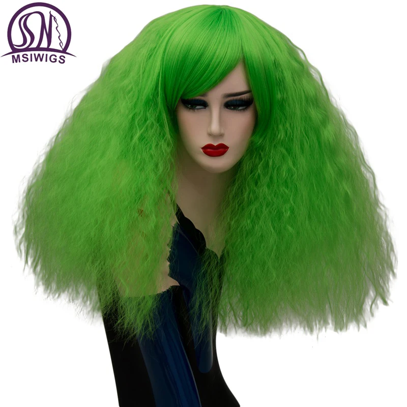 ORIGINAL MSIWIGS 17 Colors Cosplay Wigs Blonde Synthetic Wigs Pink Red Green Medium Long Hair Afro Green Wig
