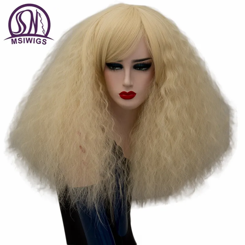 MSIWIGS 17 Colors Cosplay Wigs Blonde Synthetic Wigs Pink Red Green Medium Long Hair Afro Green Wig