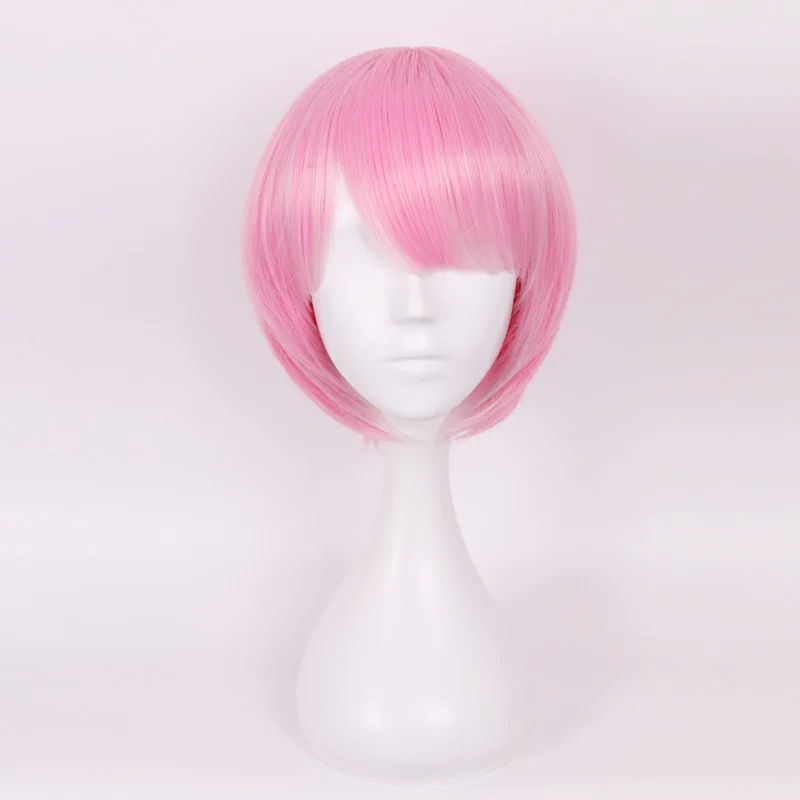 Pink Wig Short Bob Hair Heat Resistant Fiber Synthetic Blue Color Anime Cosplay Wig Pixie Cut Short