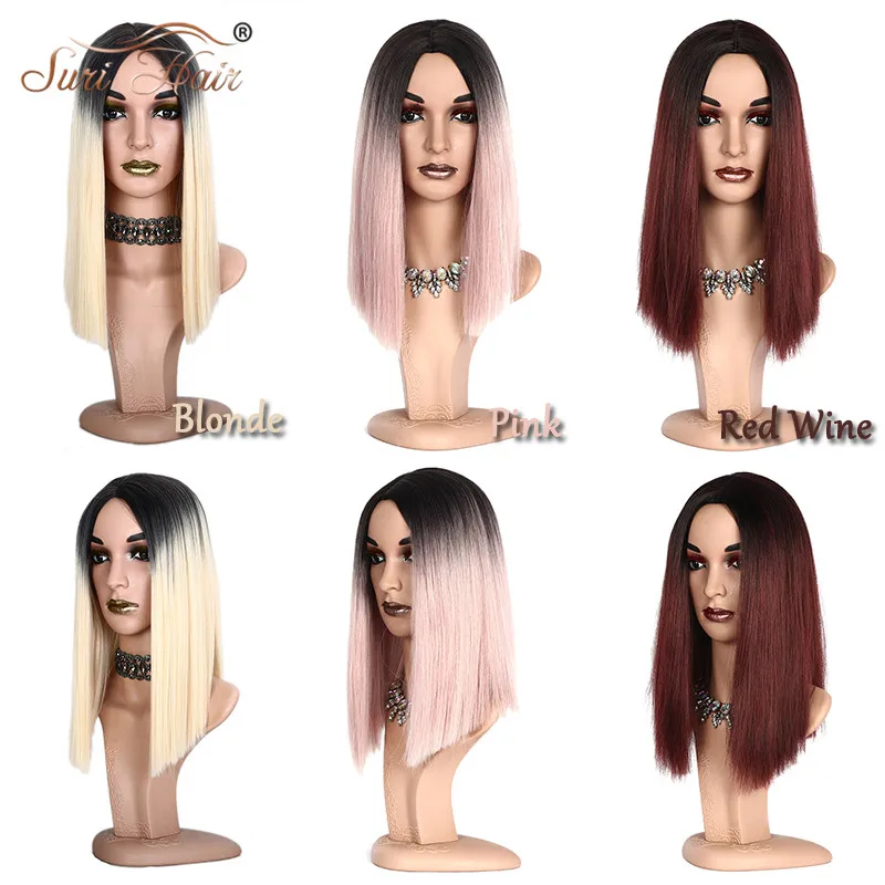 Hot Sale SURI Hair Black root Ombre blonde 613# Wig Straight Synthetic Wigs Short Hair Pink Bob Women High t