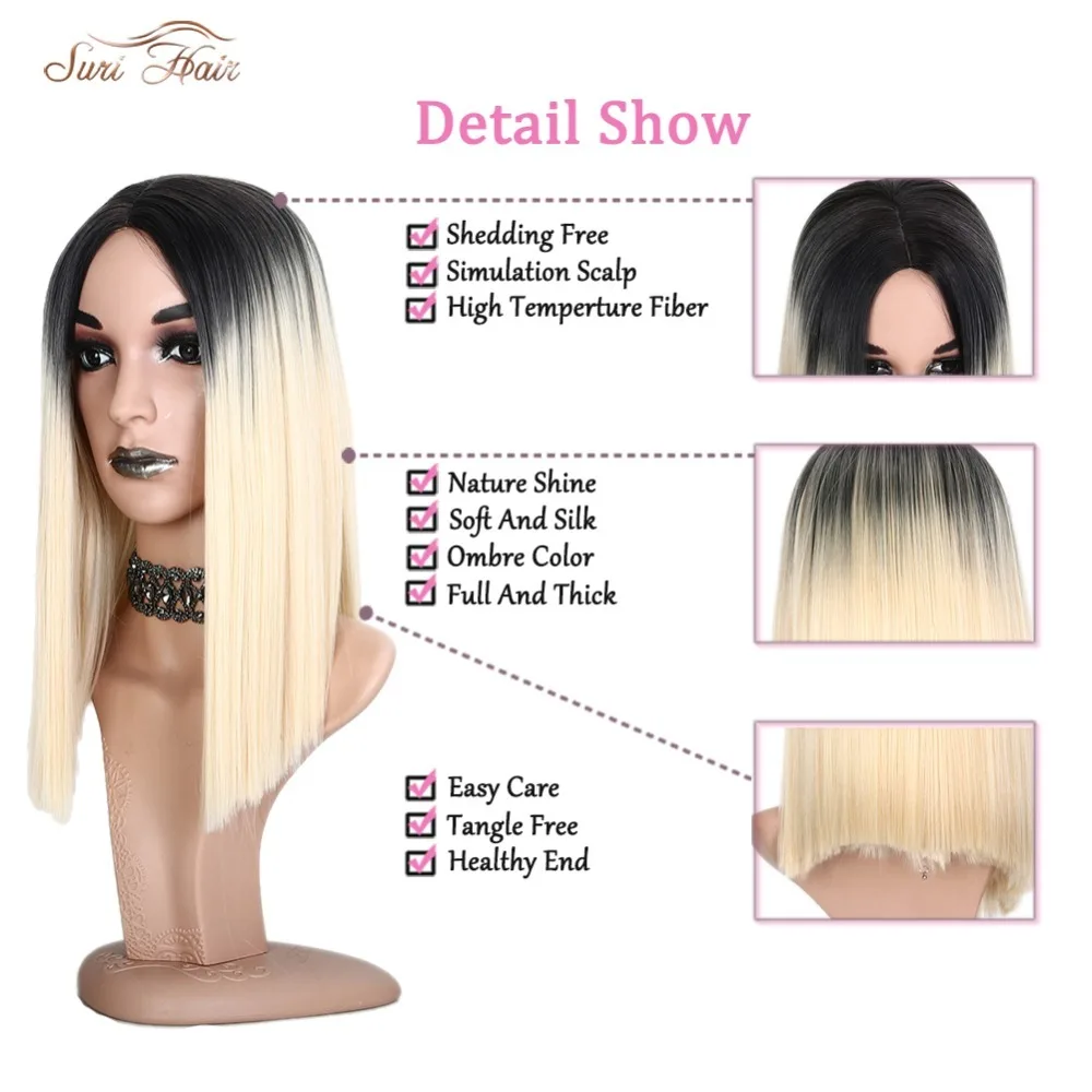 SURI Hair Black root Ombre blonde 613# Wig Straight Synthetic Wigs Short Hair Pink Bob Women High t