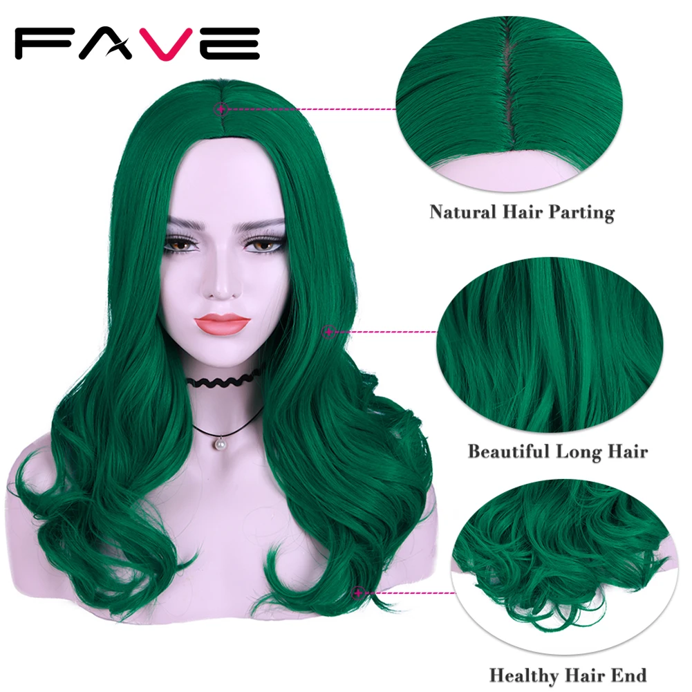 FAVE Pure Green Long Wavy Green Purple Black Pink Synthetic Wigs 22 Inch 12 color For Black White W