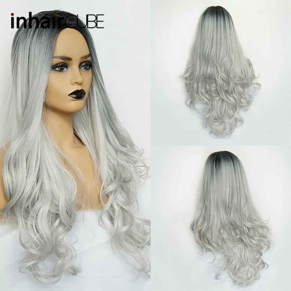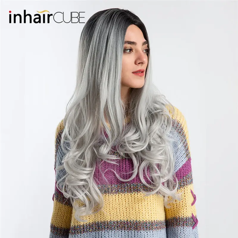 Best INHAIR CUBE 26 Inches Women Synthetic Wigs Body Wave Long Hair Middle Parted Breathable Elastic Wig