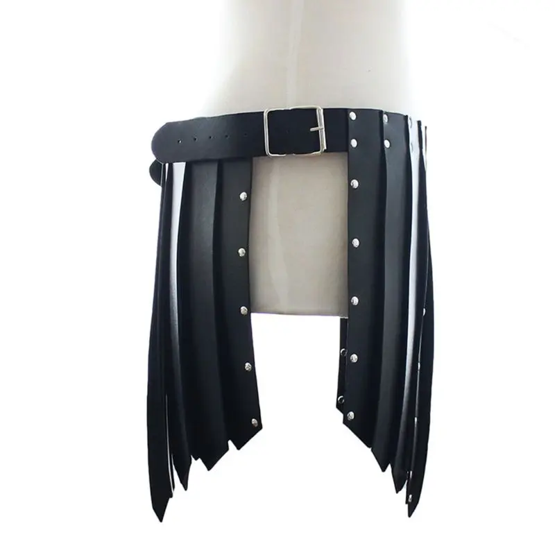 HIGH QUALITY Mens Sexy Underwear Soft Faux Leather Low Rise Metal Studded Kilt Skirt Lingerie