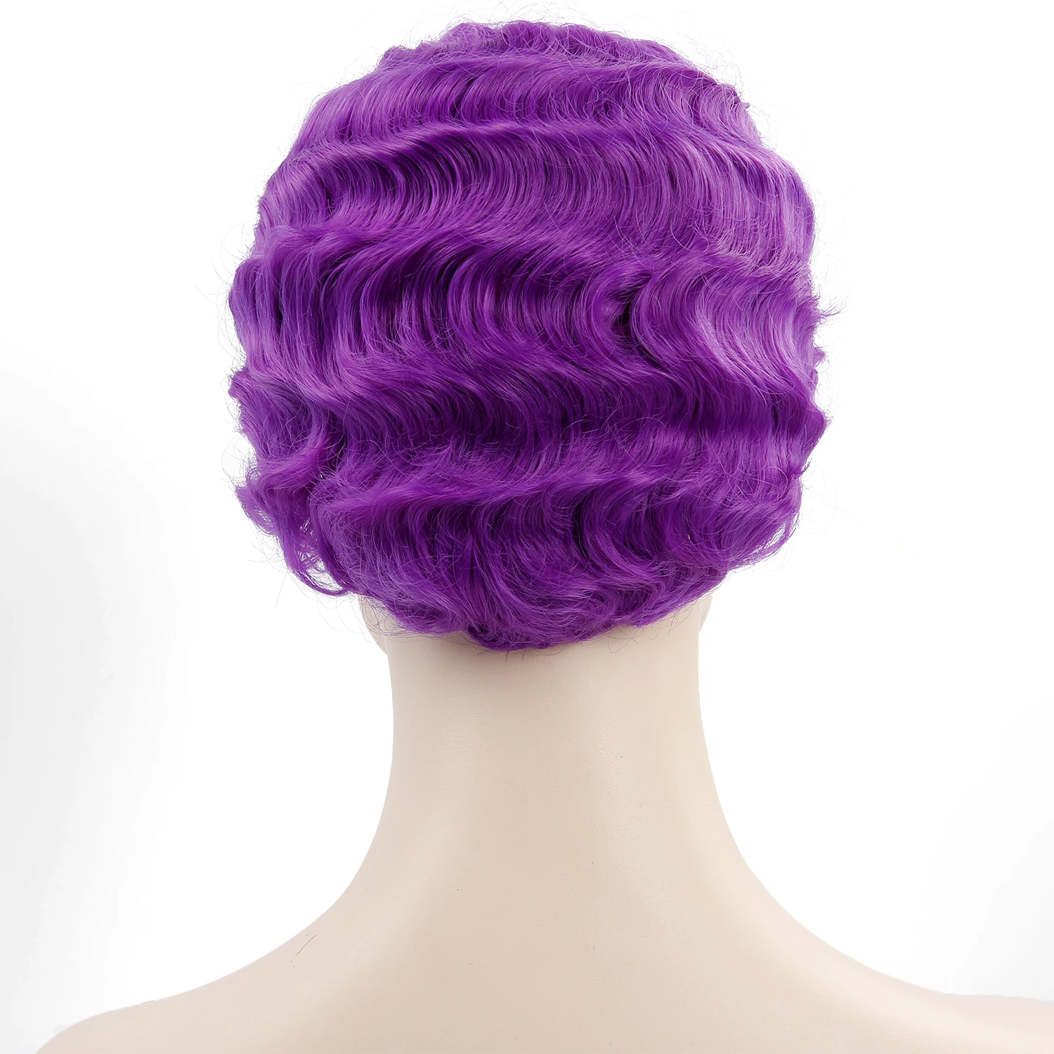 YXCHERISHAIR Short Synthetic Finger Wave Wigs High Temperature Fiber Purple Red Synthetic Curly Cos