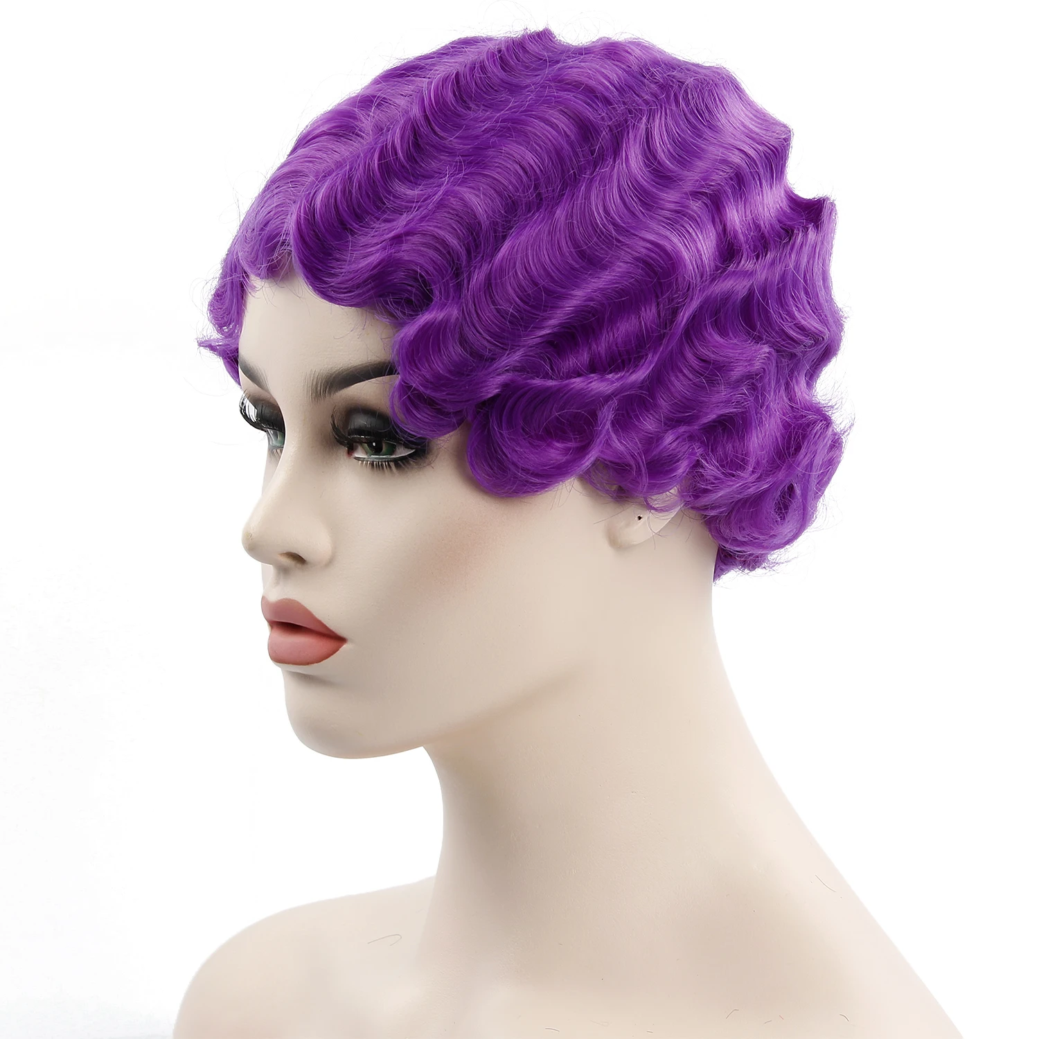 BEST YXCHERISHAIR Short Synthetic Finger Wave Wigs High Temperature Fiber Purple Red Synthetic Curly Cos