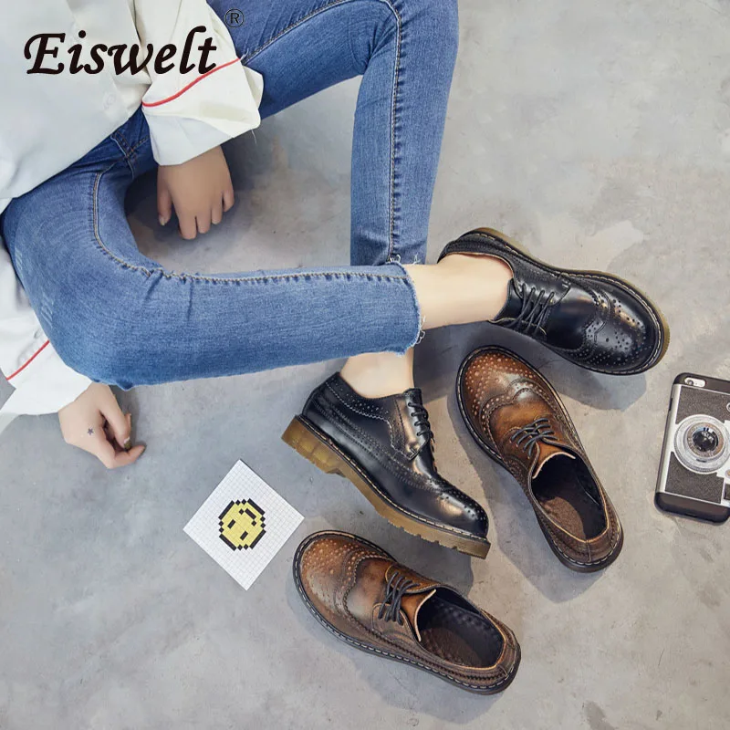 EISWELT Shoes Woman Pumps Women's Genuine Leather Shoes Autumn Women Shoes Vintage Pumps Platform S