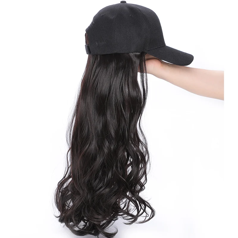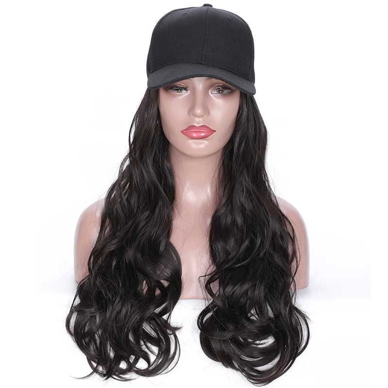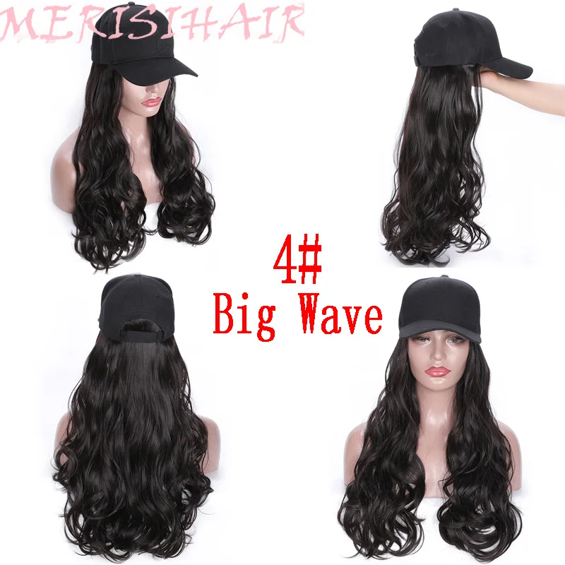 MERISI HAIR 24 Inch Long Wavy Synthetic Hair Wig With Hat Hot Style Black Color for Woman High Temp