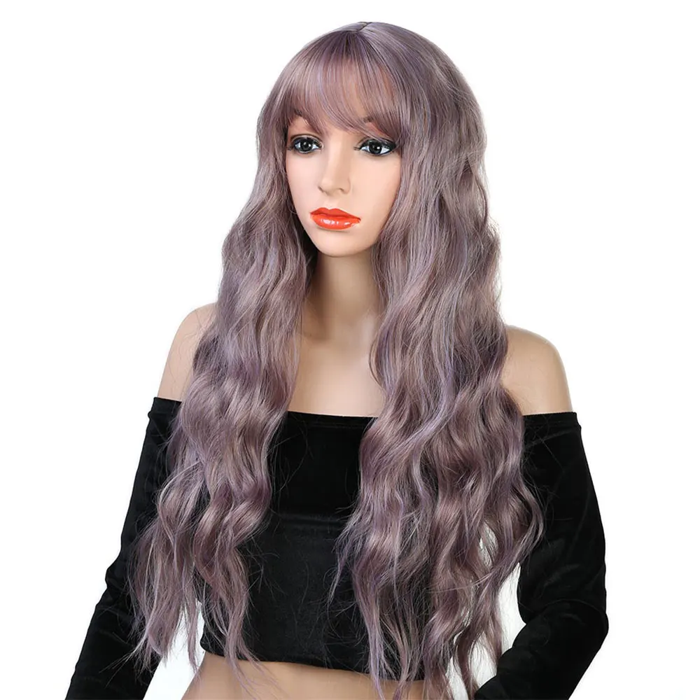 Pageup 26" Long Mix Purple Womens Wigs with Bangs Heat Resistant Synthetic Wave Wigs for Women Afri